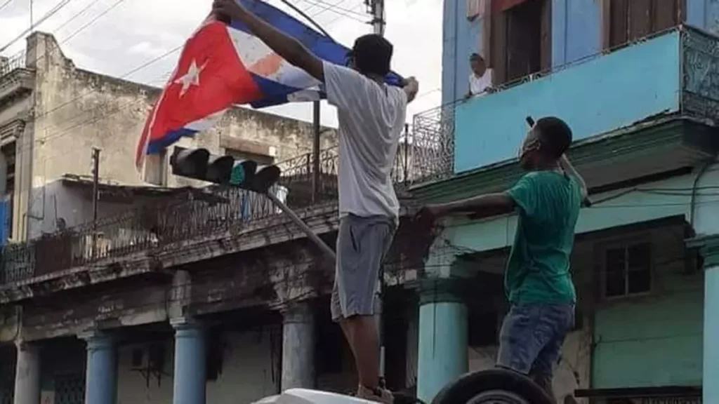 Those protests provided the most iconic image of that day, an overturned patrol car and a young man atop it with a Cuban flag, which has become irrefutable proof for tribunals of violence, which they attribute solely to the protesters.