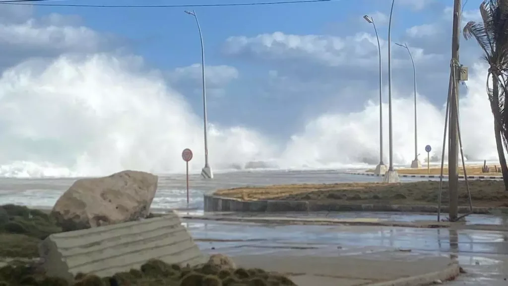 The image of the ocean forming a wall of white foam against the stone seawall has been a recurring theme in the most idyllic photographs of the capital, those that, looking west, show the old skyline—without the Torre K hotel —formed by the Habana Libre Hotel, the Hotel Nacional, and the Focsa Building, and, to the south, the Morro Lighthouse. In practice, it poses a problem every year, especially for traffic and residents of nearby areas.