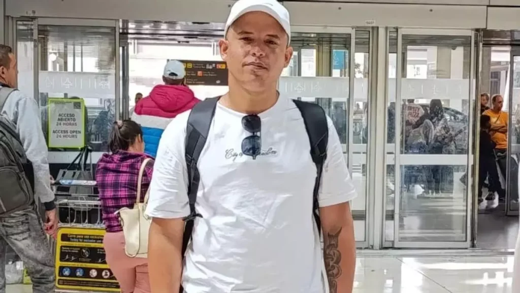 14ymedio, Madrid, October 13, 2025 — Luis Robles Elizastigui, the “the young man with the placard,” arrived in Madrid this Monday from Cuba, along with his mother, Yindra Elizastigui, and his seven-year-old son. Excited and tired, they did not want to make any statement on arrival at the Adolfo Suarez Airport in Madrid, which was witnessed by 14ymedio.