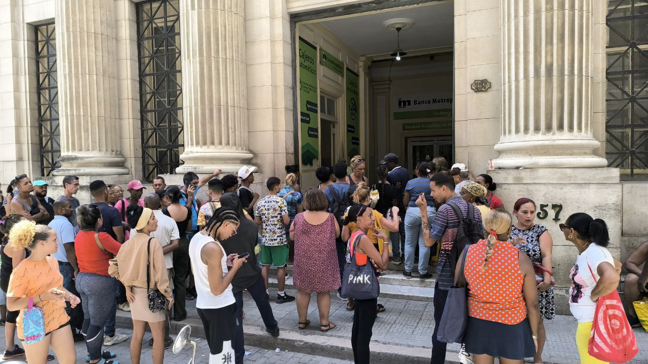14ymedio, Juan Diego Rodríguez, 8 August 2025 — A line on the left for the outdoor ATMs; another on the right for the indoor cash registers; and a third line for checking balances and transferring money from the machines. Among the crush of people waiting this Friday outside branch 308 of Banco Metropolitano in Old Havana, not one of them knew that the establishment now offers the option of booking an ATM appointment through the Ticket app, as the bank announced on its social media.