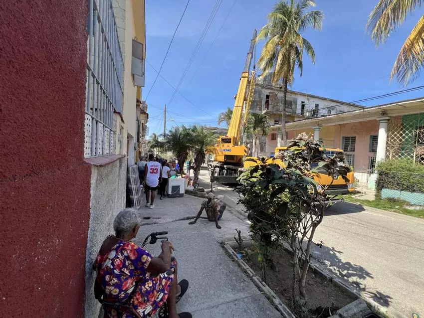 A group of public workers equipped with a crane spent some hours pulling down the remaining bits of the three-storey building – which had been declared uninhabitable for years but in which a number of families still lived. Down onto the stopped traffic, and onto the neighbourhood itself – braced against every sledgehammer blow to the walls – the yellow dust drifted down and covered everything. “At first they said that they were only going to demolish the top floors but now they’re saying they’ll have to demolish it all”, the woman in the wheelchair explained to 14ymedio.