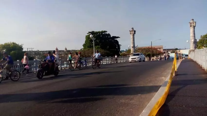 Under the scorching sun, a high school student walked along the structure this Friday, avoiding the cars traveling across the bridge built in 1878. The yellow tape blocking one of the pedestrian paths forces him to step down onto the roadway with its moving traffic or cross to the other side, where the sidewalk is also in poor condition. “I try to cross quickly because if the driver is distracted, you’ll get a scare,” the teenager, who makes the same trip every day, told 14ymedio.